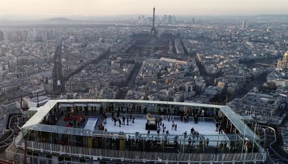 Durant trois années consécutives, nous avons installé une patinoire synthétique en haut de la tour Montparnasse à Paris.