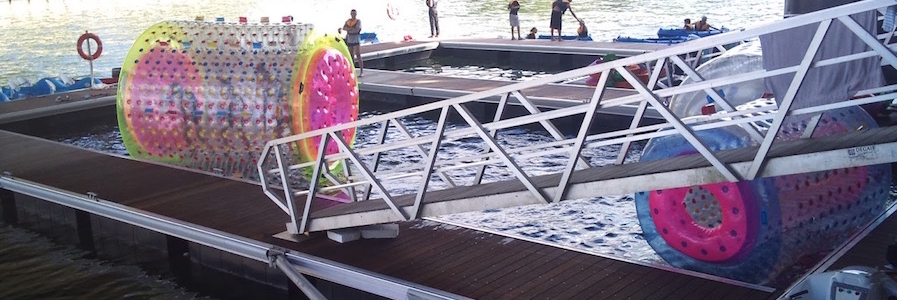 Moins haut sur l’eau ils offrent cependant une bonne flottabilité et permettent un agencement sans limite. Parfois même superposés pour la création d’escaliers, ils sont souvent utilisés pour les évènements sportifs avec de nombreux accessoires : potelet de garde corps, demi lune de protection, rampe d’échouage pour jet ski ou zodiac, etc…